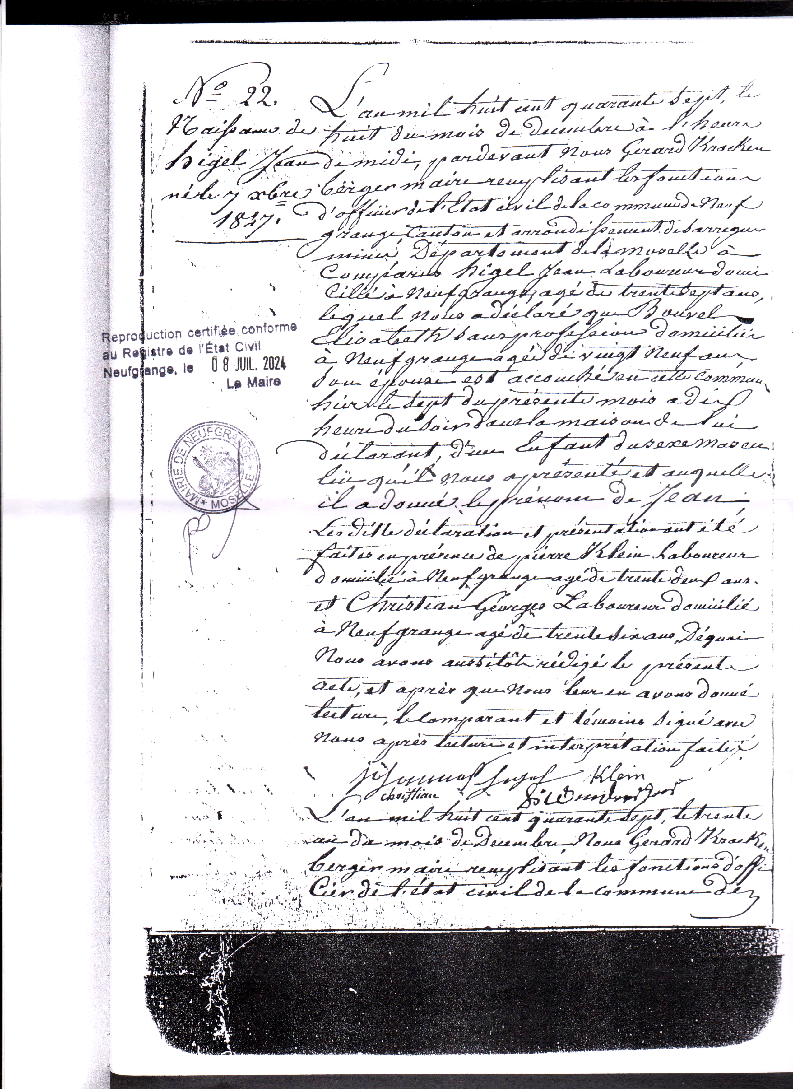- Extrait acte de naissance Higel Jean né en 1847